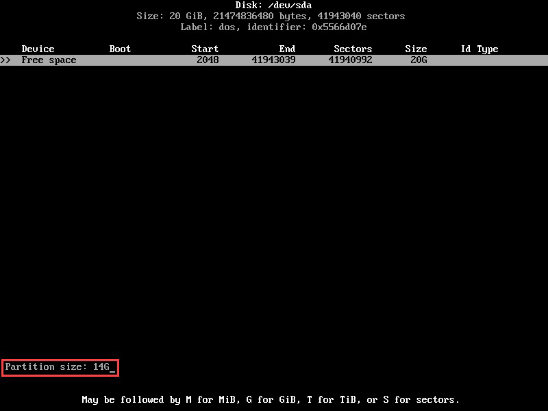 5.選擇分區(qū)大小,以千兆字節(jié)顯示。輸入******尺寸后,按Enter確認。