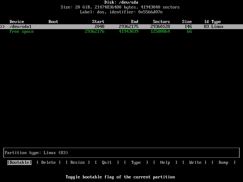 7.選擇屏幕底部的Bootable選項,然后按Enter確認。這樣你就可以確保 Arch Linux 從你安裝的主分區(qū)啟動。