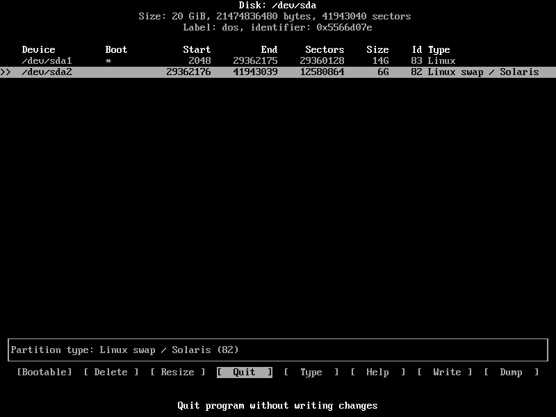 11.選擇退出并按Enter退出cfdisk屏幕。