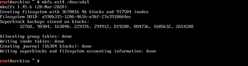 您需要格式化新分區(qū)才能安裝 Arch Linux。為此,請為每個分區(qū)創(chuàng)建一個文件系統(tǒng)。