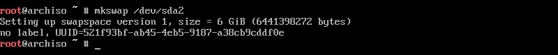 2.接下來,使用以下命令為交換空間分區(qū)創(chuàng)建文件系統(tǒng)mkswap: