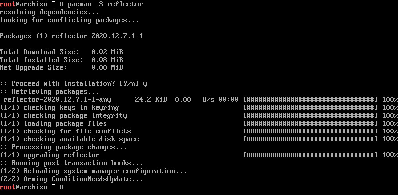 ArchLinux 安裝通過鏡像下載必要的文件。從遠離您所在位置的鏡像下載文件會減慢該過程,最終導致安裝失敗。
